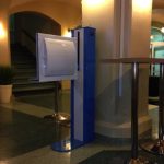 Kiosk wyposażony w elektrycznie sterowany mechanizm regulacji wysokości monitora skok 45 cm. Siłownik elektryczny z dopuszczalnym obciążeniem 300 kg i dwoma wyłącznikami krańcowymi. Dwa wandaloodporne przyciski ze stali nierdzewnej do sterowania położeniem. Idealne rozwiązanie dla osób niepełnosprawnych lub dzieci.